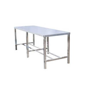 - Mặt bàn được sản xuất bằng inox SUS304 không gỉ siêu bền, cạnh bàn bo tròn được định hình bằng máy thủy lực cao, bên dưới có các thanh đố inox tăng cứng.