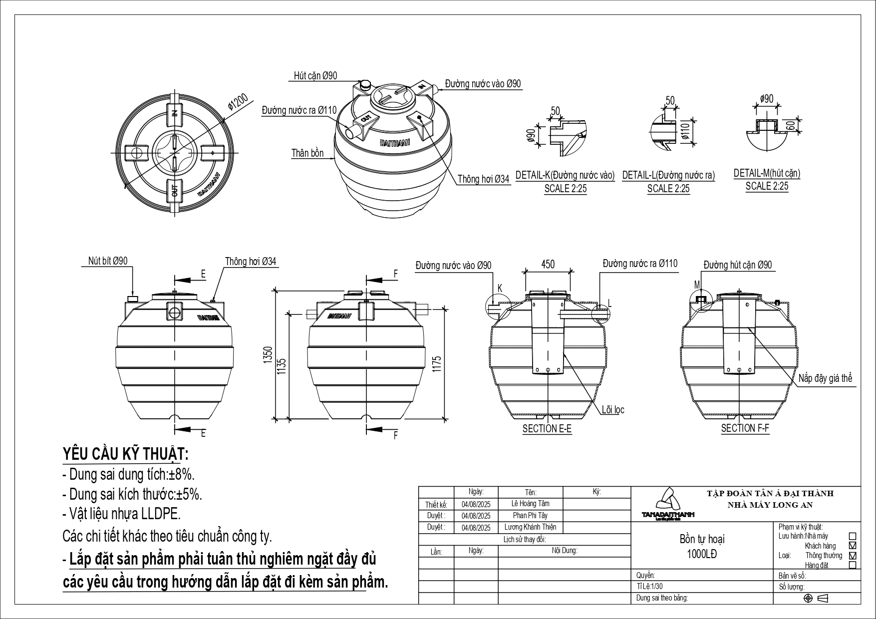 Bản vẽ bồn tự hoại Đại Thành 1000L đứng