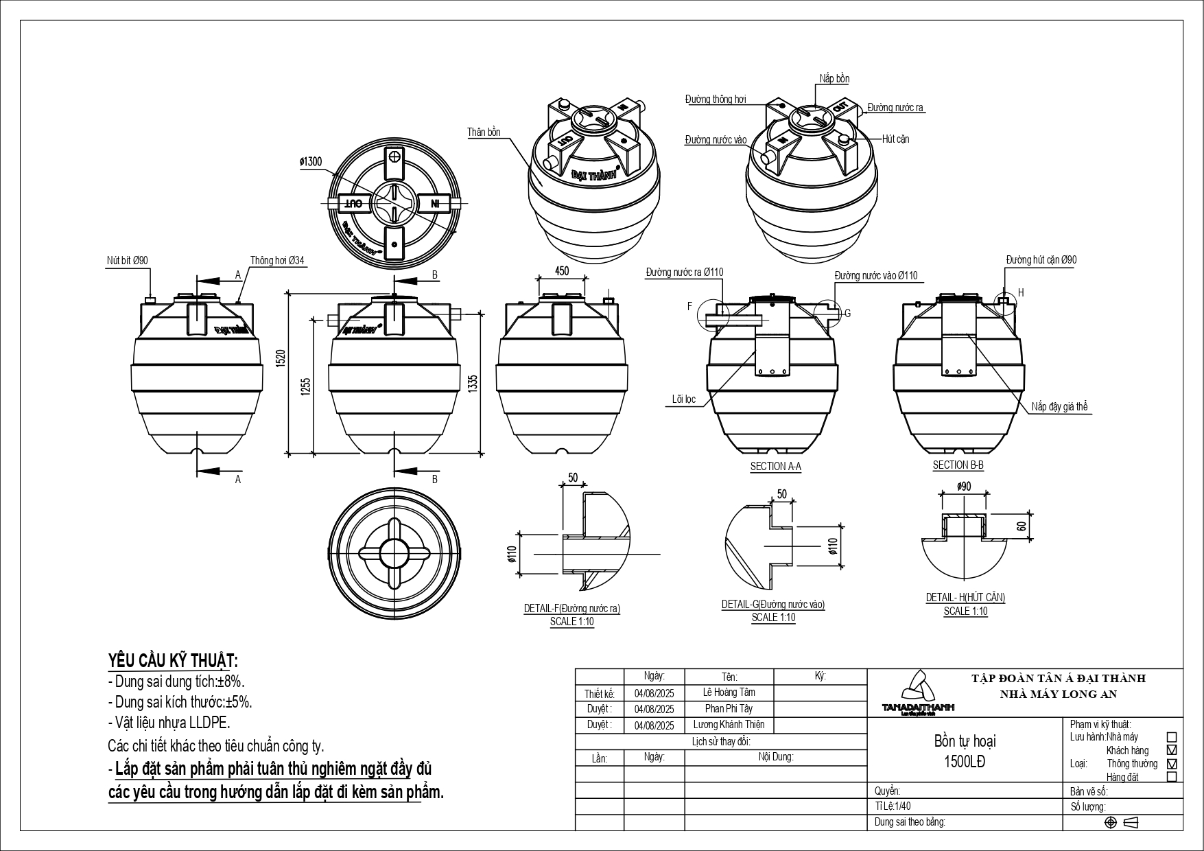 Bản vẽ bồn tự hoại Đại Thành 1500 lít