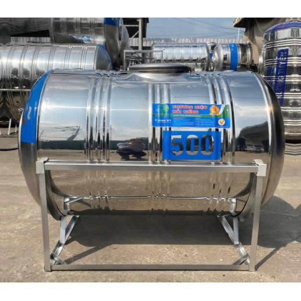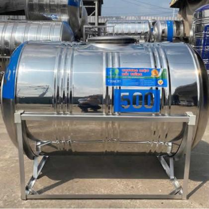 Bồn nước inox 500L nằm được thiết kế sẵn các co nước vào, co nước ra, co gắn phao và co nước xả cặn. Các co nước có thể khoan lớn hơn hoặc nhỏ hơn theo nhu cầu sử dụng.