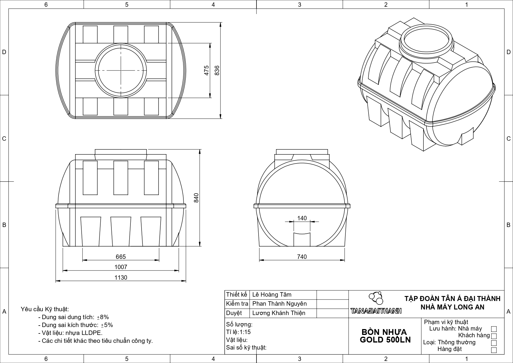 Bản vẽ bồn nước nhựa Đại Thành 500L