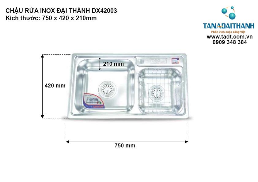 4. Thông số kỹ thuật chậu rửa inox Đại Thành DX42003
