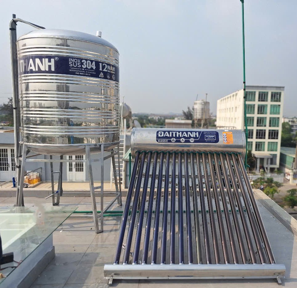 Với những công trình không có bồn nước lạnh, việc lắp bình nước phụ là giải pháp cần thiết để cấp nước cho máy nước nóng năng lượng mặt trời, giúp hệ thống hoạt động ổn định, nước chảy đều và an toàn khi sử dụng.