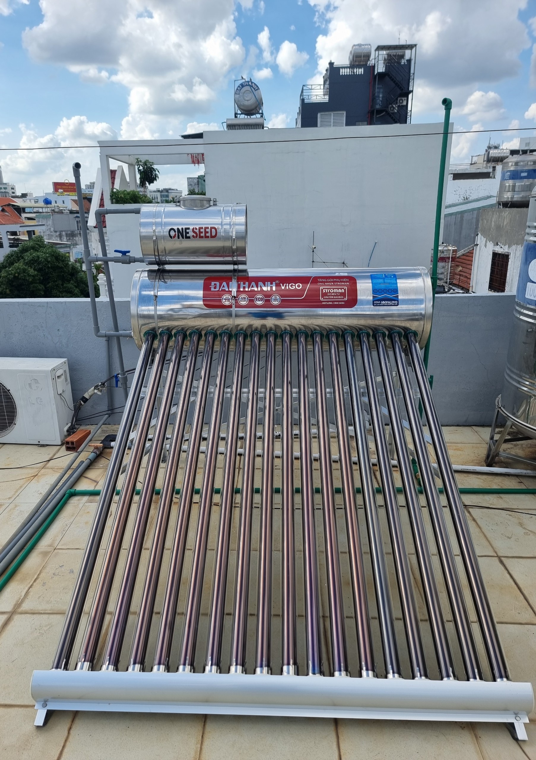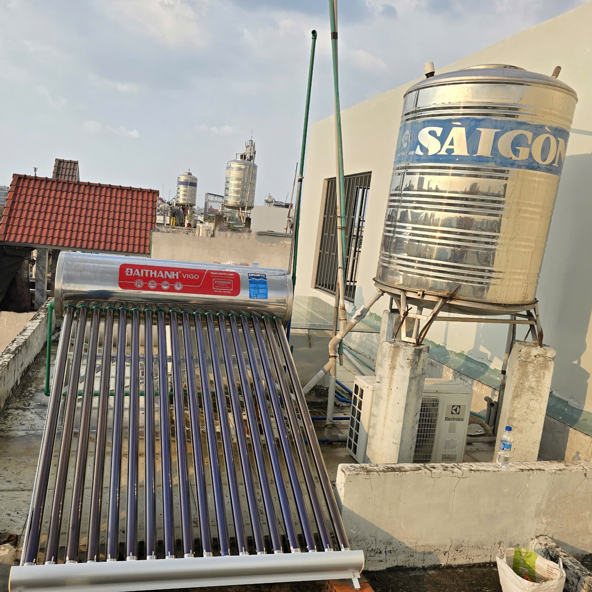 Hình ảnh thực tế máy nước nóng năng lượng mặt trời Tân Á Đại Thành