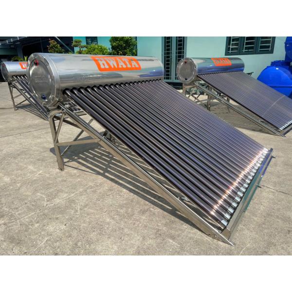 Máy nước nóng năng lượng mặt trời được sản xuất trên dây chuyền theo tiêu chuẩn Châu Âu, nguyên liệu Inox SUS 304 siêu bền.