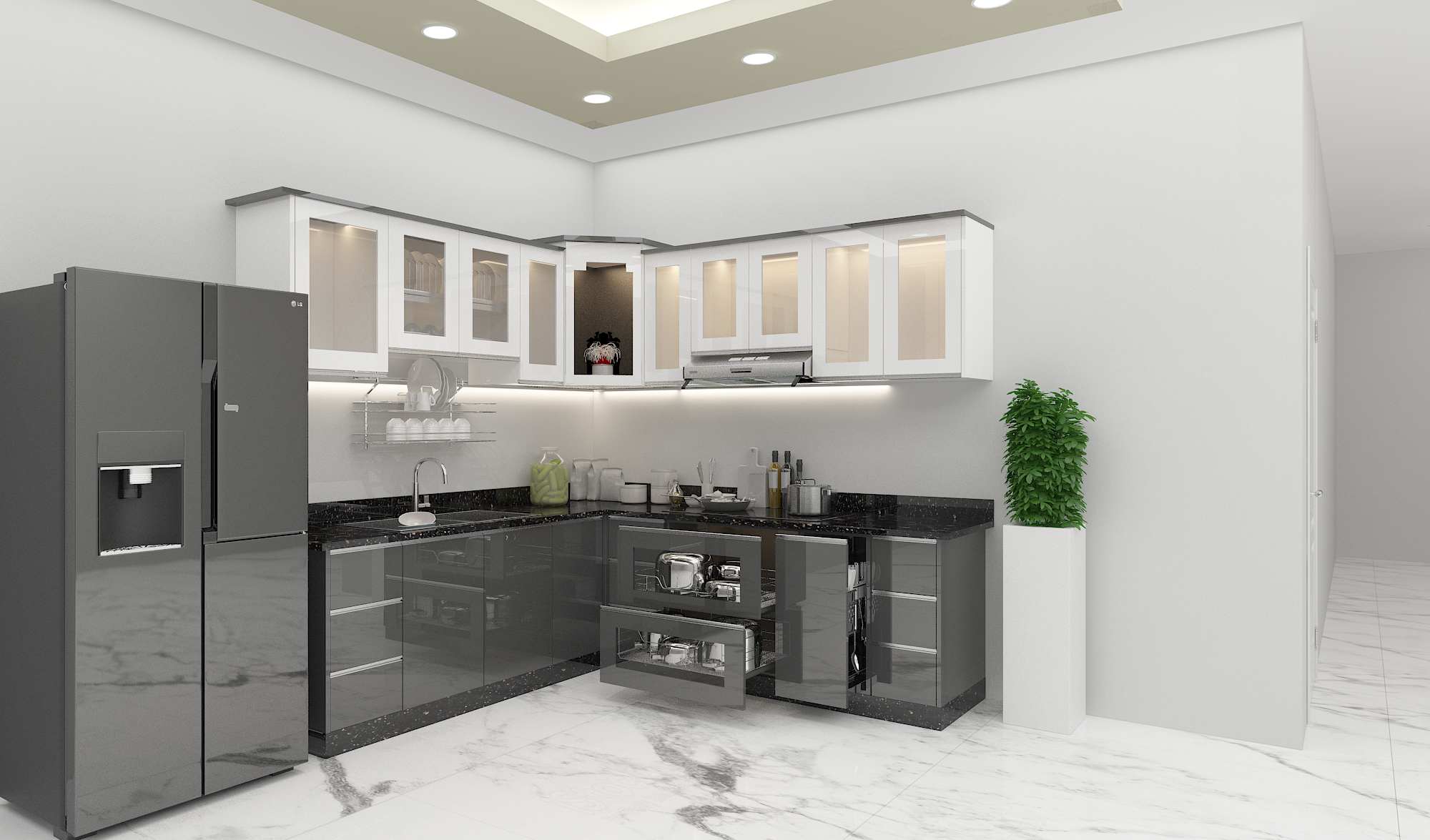 Bạn được thiết kế tủ bếp gỗ Acrylic hoàn toàn miễn phí từ 2D đến 3D. Khách hàng có thể sửa bản thiết kế đến khi khách hàng hài lòng.